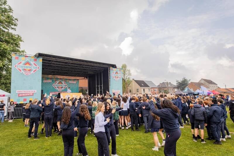 Die dag kreeg SUI namelijk Stressfactor LIVE op bezoek! De sportvelden werden voor één keer omgetoverd tot een heus festivalterrein, inclusief groot podium, eet- en drankstanden en heel wat randanimatie. Onder een stralend zonnetje gooiden de leerlingen hun dansbenen los op de beats van onder andere DJ Voltrack en Boef. Iedereen was laaiend enthousiast en amuseerde zich kostelijk .