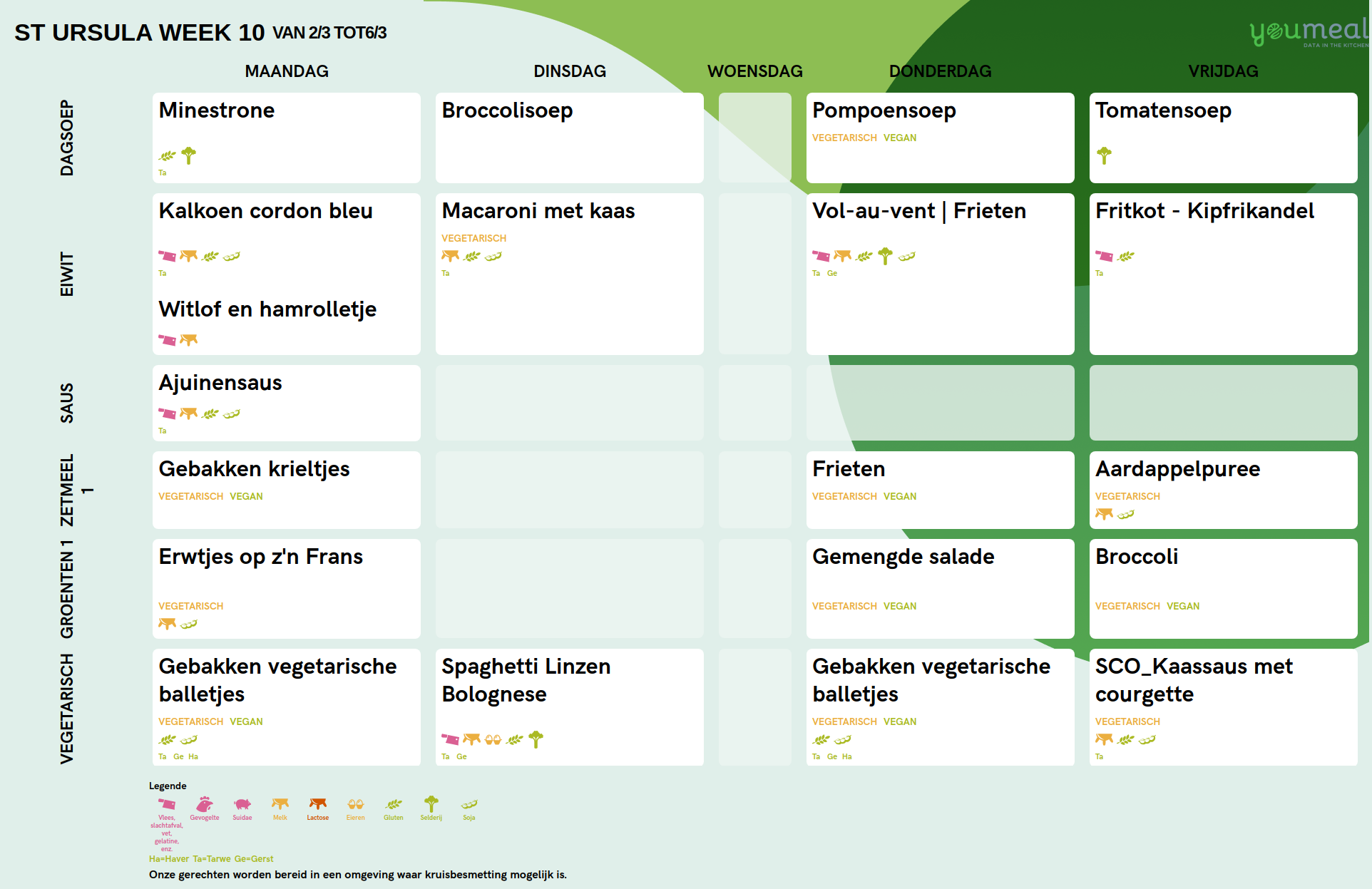 Het menu voor week 9 kan u hier downloaden.Het menu voor week 10 kan u hier downloaden.